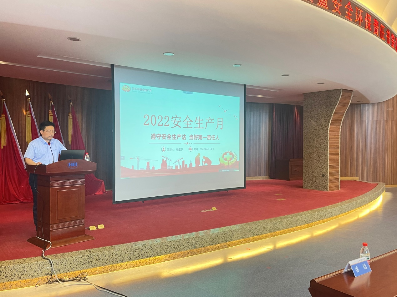 黨委書記、董事長楊玉亭作了《遵守安全生產(chǎn)法 當(dāng)好第一責(zé)任人》的主題報告,著重從三個方面就安全工作展開講授,既有中央精神傳達,又有安全生產(chǎn)相關(guān)理論知識解讀,并對安全生產(chǎn)月工作提出了具體要求:一要認清形勢,統(tǒng)一思想,充分認識開展“安全生產(chǎn)月”活動的重要性;二要提高站位,落實責(zé)任,切實加強各級人員的安全意識;三要強化宣傳,普及知識,讓安全常識入腦入心。