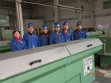 按照“突破一個(gè)難題”的既定目標(biāo),小組積極開展工作,以組長周世鋒為首的部門全體員工分工合作,分頭開展各分項(xiàng)任務(wù)工作:項(xiàng)目負(fù)責(zé)人帶頭充分查閱資料,深入分析,制定了科學(xué)合理的研究方案,研究工作目標(biāo)明確,年輕的科研人員勇于承擔(dān)重任,分工合作,逐個(gè)突破冶金工藝研究、拉拔工藝研究、焊接工藝研究,樣絲試制等多方面的難題,于今年8月初突破了該項(xiàng)目的技術(shù)難關(guān)。