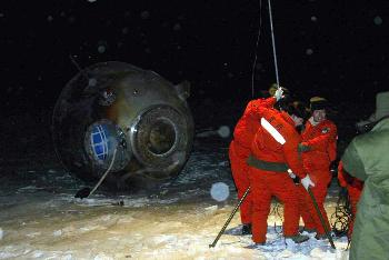 “神舟”四號(hào)飛船返回艙安全降落在內(nèi)蒙古中部草原